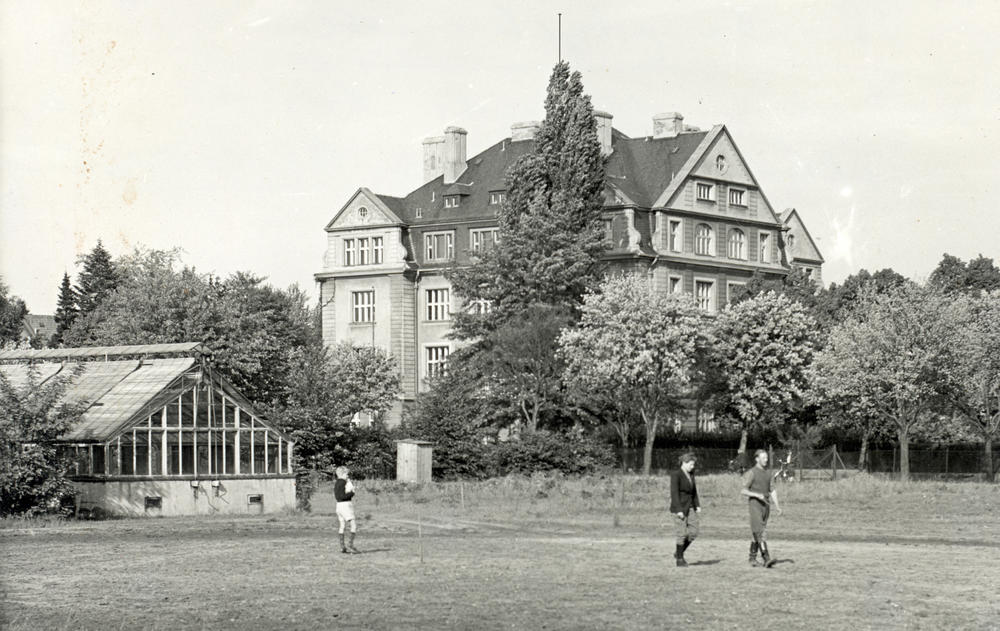Im Wintersemester 1948/49 war in diesem Haus so ziemlich alles untergebracht: ganze 13 Institute der Philosophischen Fakultät, ein Schreibwarenladen, eine Schuhmacherwerkstatt, eine Kleider-Ausgabestelle und mehrere Dienstwohnungen. Auch das Immatrikulationsbüro residierte dort. Es wurde Schauplatz des berühmt gewordenen Münzwurfs zwischen Karol Kubicki und Helmut Coper: Die beiden Medizinstudenten mussten entscheiden, wer von beiden sich als Erster an der neugegründeten Universität einschreiben durfte.