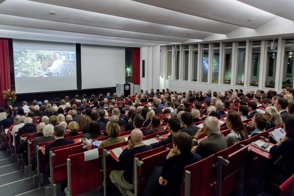 Wie schon im vergangenen Jahr war der Hörsaal A des Henry-Ford-Baus auch an diesem 4. Dezember gut besucht: Studierende, Beschäftige, Angehörige des Präsidiums und Alumni hatten sich eingefunden, um den Jahrestag der Freien Universität zu zelebrieren. Der sogenannte Ernst-Reuter-Tag erinnert dabei nicht nur an das 69-jährige Bestehen der Universität, sondern auch an den ehemaligen Berliner Oberbürgermeister Ernst Reuter, der maßgeblich zur Gründung der Freien Universität Berlin am 4. Dezember 1948 beigetragen hat.