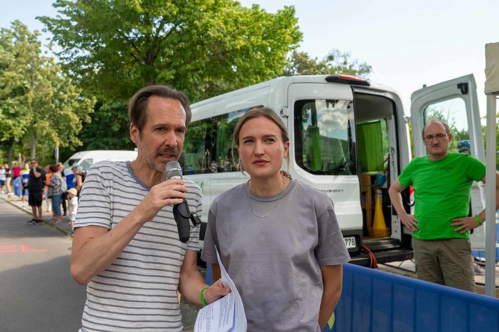In einer spontanen Geste überreicht Präsident Ziegler Sebastian Eichner ein Lauftrikot mit der Startnummer 2023. Eichner ist die schnellste Person aus der Gruppe derer, die sich als divers identifizieren. Eben noch hatte Ziegler das Trikot als kleinen „Wink“ selbst erhalten, verbunden mit der Bitte, das kombinierte Sport- und Party-Ereignis im kommenden Jahr zu wiederholen. Die Aussicht dafür scheint gut, Ziegler will dann auch selbst an den Start gehen. Auch wenn er einräumt: „Ich bin kein Spitzensportler, aber Laufen macht Spaß.“