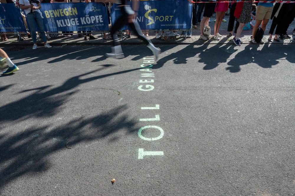 Unter die Freunde, Mitarbeitenden und Studierenden der Freien Universität hat sich an diesem Festtag auch eine echte Olympionikin gemischt: Caterina Granz, die bei den Olympischen Spielen 2021 in Tokio über 1500 Meter antrat und zwei Jahre zuvor bei den Welt-Universitätsspielen in Neapel Gold gewann, studiert an der Freien Universität Psychologie. Einen Besuch beim Campus Run ließ sie sich trotz der gerade laufenden Vorbereitung auf die Deutschen Meisterschaften nicht nehmen. Am Start schilderte sie, wie sie beim Laufen „in den Flow“ kommt, und auch zur Siegerehrung war Granz gemeinsam mit Universitätspräsident Günter M. Ziegler zur Stelle.
