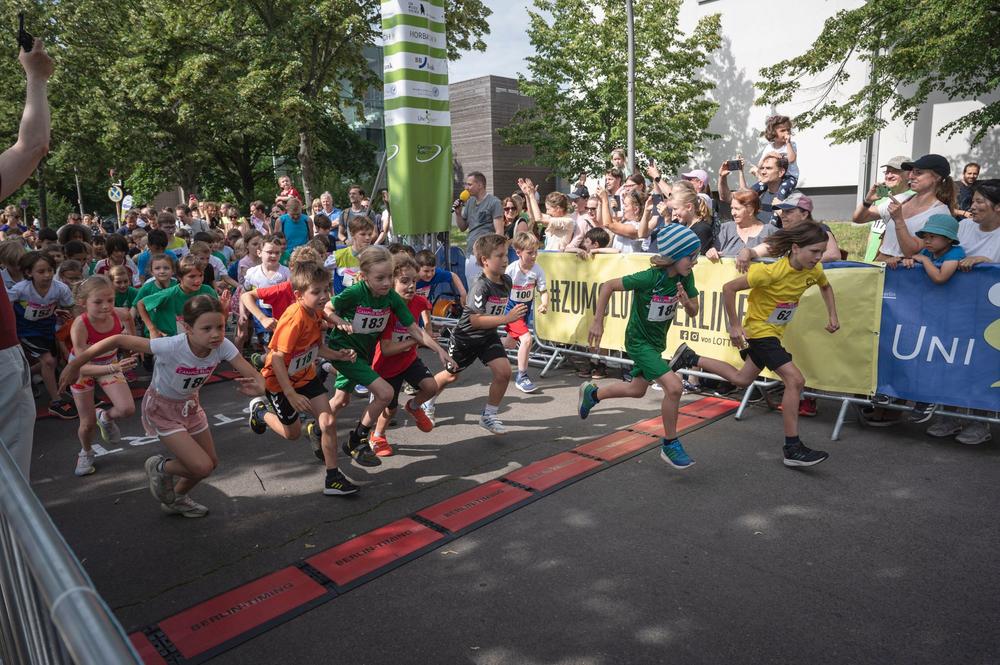 Um Punkt 16.30 Uhr war es dann so weit: Zuerst liefen rund 100 Kinder die 1-Kilometer-Strecke – teilweise mit ihren Eltern. Das Startzeichen am Rande der Holzlaube gab Universitätspräsident Professor Günter M. Ziegler. Anschließend fiel der Startschuss für die Läufe über 5, 7 ½ und 10 Kilometer. Zur Tradition gehört auch, alle Teilnehmenden gehörig anzufeuern. Das übernahmen nicht nur die Zuschauer*innen, sondern auch ein DJ und die Rockband Fuzzphase, die entlang der Strecke mit den passenden Beats für die richtige sportliche Atmosphäre sorgten.