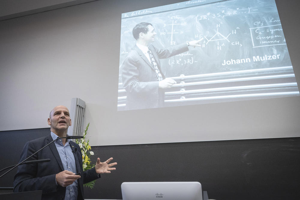 Die Zeit in Dahlem habe er geliebt, sagt er in seinem Festvortrag mit dem Titel „Die Organokatalyse – von Dahlem nach Stockholm und zurück“. Das Wetter sei dort immer besser gewesen als in seiner Wohngegend rund um den Nordbahnhof. Zudem habe er eine hervorragende Ausbildung bekommen: „Johann Mulzer war absolut legendär an der Tafel!“ Von dessen Begeisterung für die Totalsynthese, die Königsdisziplin der Chemie, habe er sich anstecken lassen.