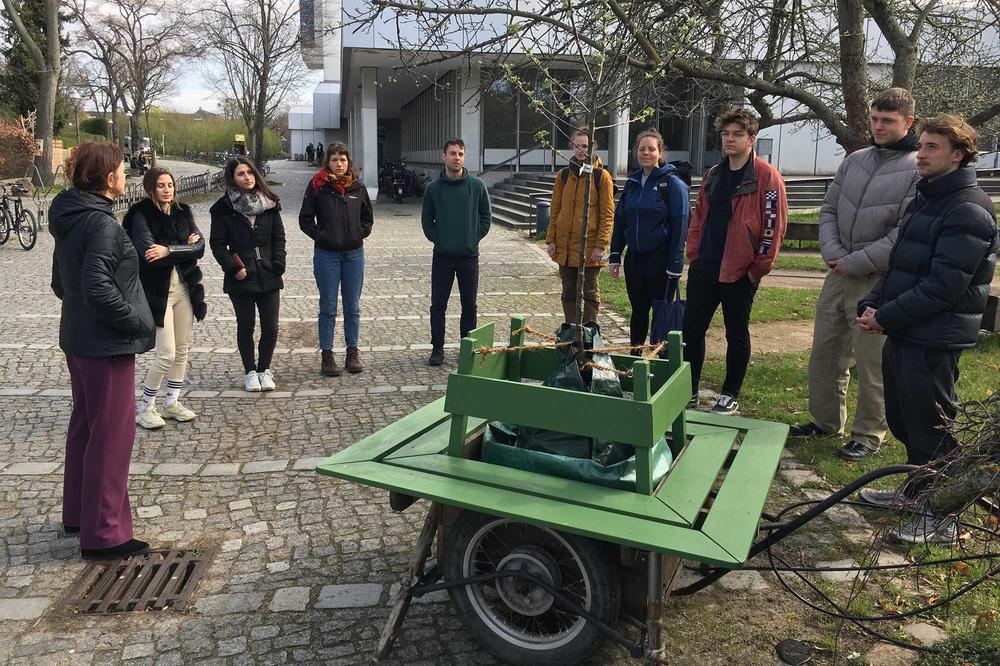 Um die Mobilität auf dem Campus noch rad-, fuß- und klimafreundlicher zu gestalten, befragte die Stabsstelle Nachhaltigkeit Studierende über ihre Anfahrtswege. Dank einer Kooperation mit der BVG-Mobilitätsplattform Jelbi stehen nun an acht Standorten E-Roller und E-Fahrräder für die Wege auf dem Campus zur Verfügung. Für mehr Artenreichtum setzt sich seit einigen Jahren die Initiative „Blühender Campus“ ein. Dafür wurden die Mitglieder 2023 mit dem Berliner Naturschutzpreis geehrt. Gratulation!