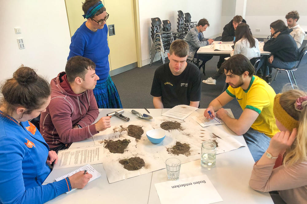 „Wir wollten es möglichst multiperspektivisch angehen und nahmen verschiedene Fachexpert*innen aus der Uni und der Praxis mit ins Boot“, erzählt Braun-Wanke. Unter anderem den Pflanzenkohle-Spezialisten Robert Wagner vom Fachbereich Geowissenschaften, die Pflanzenökologin Rebecca Rongstock, die Bodenforscherin Stefanie Maaß vom Institut für Biologie, Judith Hübner von der Koordinierungsstelle NUN, Expert*innen aus Landschaftsarchitektur, Kreislaufwirtschaft und "Schwammstadt" sowie Schüler*innen der Peter-Lenné-Schule, die eine Ausbildung in Garten- und Landschaftsbau machen.