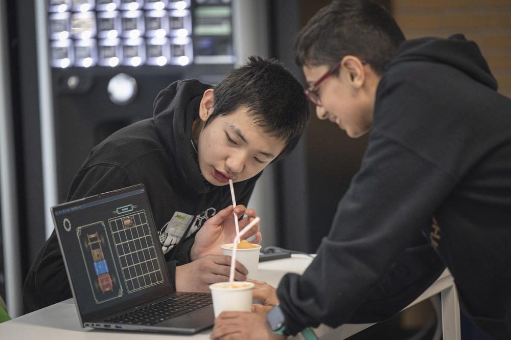 Noah, Anton und Lasse haben den BrisenBot entwickelt, eine Schaltung, die automatisch die Fenster im Klassenzimmer öffnet, wenn die Luft stickig zu werden droht. Salma und Joudi haben nachhaltige Düngemittel für Paprikapflanzen im Vergleich getestet, etwa Eierschalen oder Kaffee. Vincent hat verschiedene Versionen des Perpetuum Mobile, der unmöglichen Maschine, nachgebaut und anhand von physikalischen Gesetzen erklärt, warum sie nicht funktionieren können. Anton, Juri und Illia haben ein strategisches Computerspiel über einen Ameisenstaat programmiert, Martha hat untersucht, wie sich Fungizide auf Früchten nachweisen und vor dem Verzehr am besten entfernen lassen.