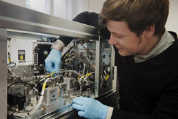 Prof. Dr. Kevin Pagel with the ion mobility mass spectrometer used for his research