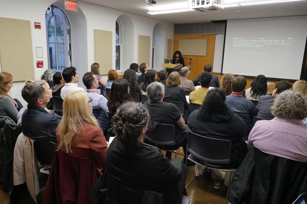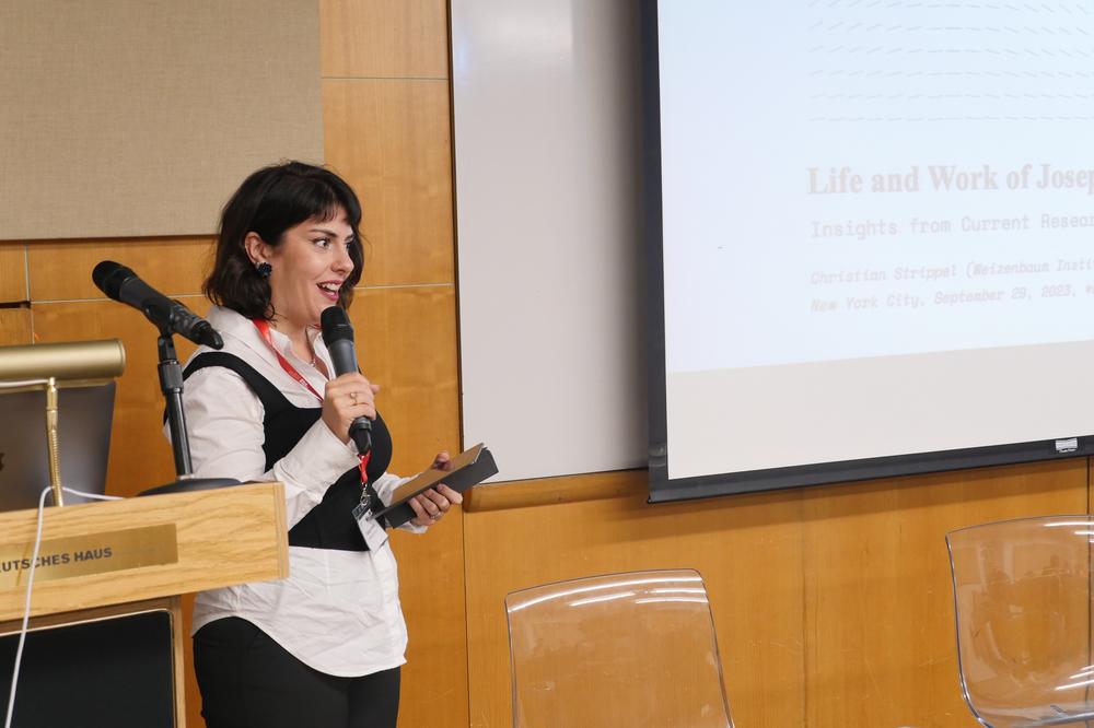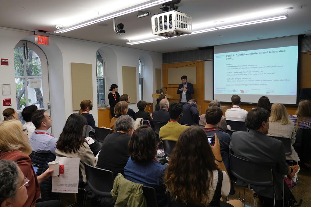 From September 28-29th, 2023 alumni of Freie Universität Berlin, Technische Universität Berlin, the Weizenbaum Institute and affiliated institutions met for a two-day symposium in New York City. The topic was the current debate about artificial intelligence and the critical approach to it - following the tradition of Joseph Weizenbaum, the German-American pioneer who would have celebrated his 100th birthday this year. Researchers, business representatives and critical audience discussed various aspects of artificial intelligence and human-machine interactions at the German House at New York University. What is the role of humans in artificial intelligence, what is the role of algorithms in digital societies? How can these algorithms and rankings distort information? And what about regulation, to what extent is the landscape already determined by a few players in Silicon Valley who set the digital pace and tend to pursue economic interests? The discussions and insights of the first day were rounded off by a keynote by Sarah Sharma, who presented a media-theoretical techno-feminist perspective.