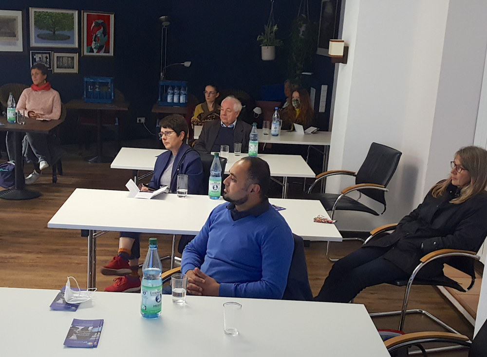 After a brief tour of the GZF premises at the beginning of the event, all participants gathered in the building's conference room. They were welcomed by the team of the health center. While Dr. Mönter gave an introduction to the current political and legal developments regarding the possibilities of health care in Germany and especially in Berlin, Elif Alkan Härtwig (psychological psychotherapist), Roman Snihurowych (physician for psychiatry and psychotherapy), Prof. Dr. Dr. Daniel Ketteler (physician for psychiatry and psychotherapy), and Hans Peter Hoffmann (project collaborator) each reported from the practical perspective of their respective areas of responsibility. Although it is possible for refugees under the Asylum Seeker Benefits Act (AsylbLG) to visit a doctor in Germany on a regular basis, the associated organizational hurdles are usually so high that specialized institutions such as the GZF are needed. The GZF team reported how they organize interpreters, coordinate settlements with dozens of authorities, cooperate with representatives of various religious communities and, above all, how they treat those affected. Their goal is to create the best possible conditions for the refugees.