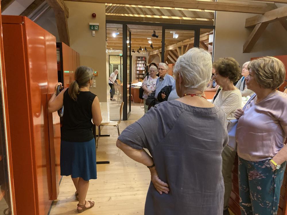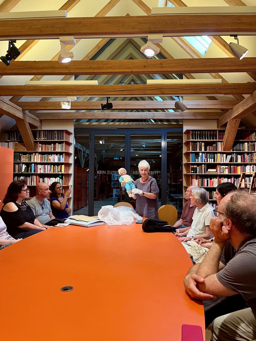 A fascinating journey into the history of the Berlin district Neukölln - on July 12th, 2024, we visited our alumna Christa Jancik for a look behind the scenes at the Neukölln Archive and Museum. Idyllically situated on the Britz estate, the Neukölln Museum is the second oldest district museum in Berlin. It collects everything that has to do with Neukölln past and present. The history repository comprises a museum collection of things that tell special stories. For example, we were able to see a never-before-exhibited doll from 1902, which was made in Neukölln and was owned by a Neukölln family for generations. Postcards with views of the former Neukölln, old letters, tickets and collections of documents from the estates of interesting Neukölln personalities are a real treasure trove for history fans and are just waiting to be discovered.