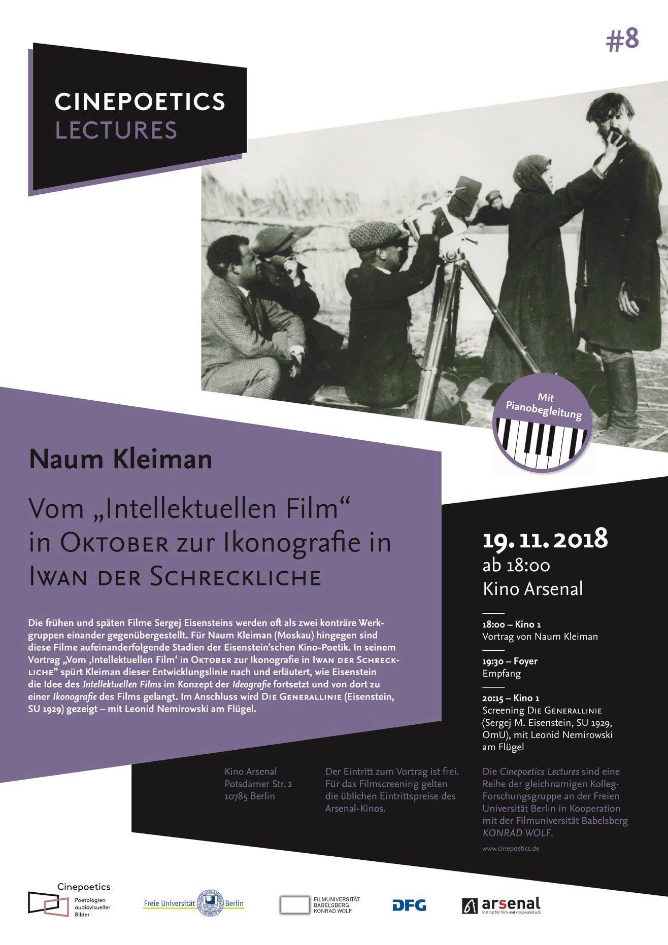 - November 19, 2018, Lecture: Vom "Intellektuellen Film" in OKTOBER zur Ikonografie in IWAN DER SCHRECKLICHE, Kolleg-Forschergruppe Cinepoetics