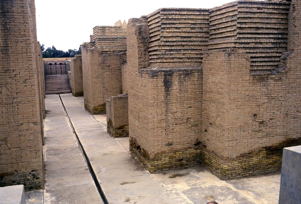 Ungebrannte, luftgetrocknete Lehmziegel, das ist der Stoff, aus dem auch der Turm zu Babel gebaut war (Abb. 02). In Mesopotamien war dies das Standard-Baumaterial, denn Steine und Holz waren Mangelware und mussten über größere Entfernungen herbeigeschafft werden, was mühsam und teuer war. Lehmziegel haben hervorragende Dämmungseigenschaften gegen Hitze und Kälte, was für ökologische Häuslebauer kein Geheimnis ist. Je dicker die Mauern und je höher der Raum, desto kühler war das Rauminnere in den glutheißen Sommern Mesopotamiens.
