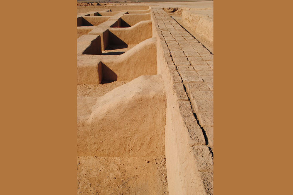 Die technischen Bedingungen, unter denen Menschen Hütten, Häuser, Tempel und Paläste über die Jahrtausende errichtet haben, sind sehr unterschiedlich und werden jeweils von den Materialressourcen vor Ort bestimmt. Ein Beispiel stammt aus Nord-Mesopotamien. Der Ort heißt Tell Schech Hamad (Abb. 01), liegt im vom Krieg gebeutelten östlichen Syrien, im noch von der Terrormiliz „Islamischer Staat“ kontrollierten Teil. Er war von 1978 bis 2010 Gegenstand eines von der Deutschen Forschungsgemeinschaft geförderten Ausgrabungsprojektes, dessen Träger die Freie Universität Berlin in Kooperation mit der Universität Tübingen und dem Museum Deir ez-Zor war. An diesem Ort haben die Archäologen die assyrische Stadt Dur-Katlimmu wiederentdeckt. Sie war in den beiden assyrischen Reichen zwischen 1300 und 612 v. Chr. ein bedeutendes Provinzzentrum und eine Garnisonsstadt.