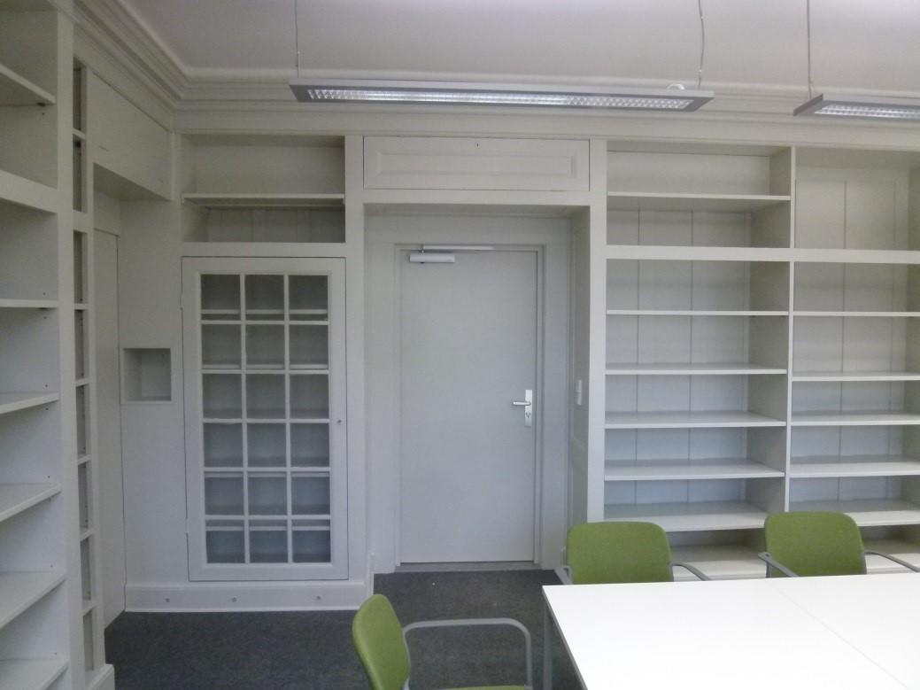 So konnte das Bild des Altbaus an Fassaden und Fluren wiedergewonnen werden, während anstelle der Laboreinbauten moderne Büroräume und einige mit Medientechnik ausgestattete Seminar- und Besprechungsräume entstanden.