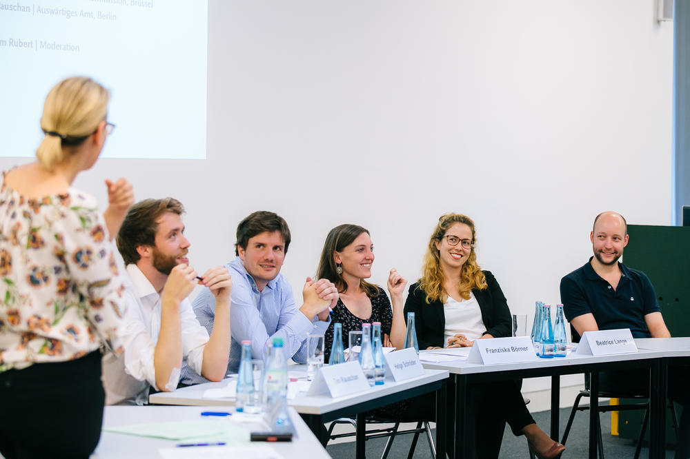 Doch wie kann der berufliche Weg in eine Internationale Organisation aussehen? Die Alumni waren sich einig, dass es wichtig ist, neben dem Studium durch Praktika erste Einblicke ins Berufsleben zu bekommen. Nur dann zeige sich, ob der Wunscharbeitgeber wirklich der Richtige ist, ob die Arbeitsinhalte und das Umfeld passen. Aber auch fachfremde Tätigkeiten, ehrenamtliches Engagement, Reisen und Spracherwerb helfen, den eigenen Horizont zu erweitern und eröffnen manchmal ungeahnte berufliche Möglichkeiten. Wenn man von einer Tätigkeit begeistert und an einer Anstellung interessiert ist, dann sei es sinnvoll, dies dem Praktikumsgeber direkt zu signalisieren, ermutigte Franziska Börner die Studierenden. Auch wenn sich das Profil einer ausgeschriebenen Stelle nicht ganz mit dem eigenen deckt, könne sich das Bewerben lohnen, sagte Tim Rauschan: „Wer sich nicht bewirbt, der hat die Absage schon erhalten.“