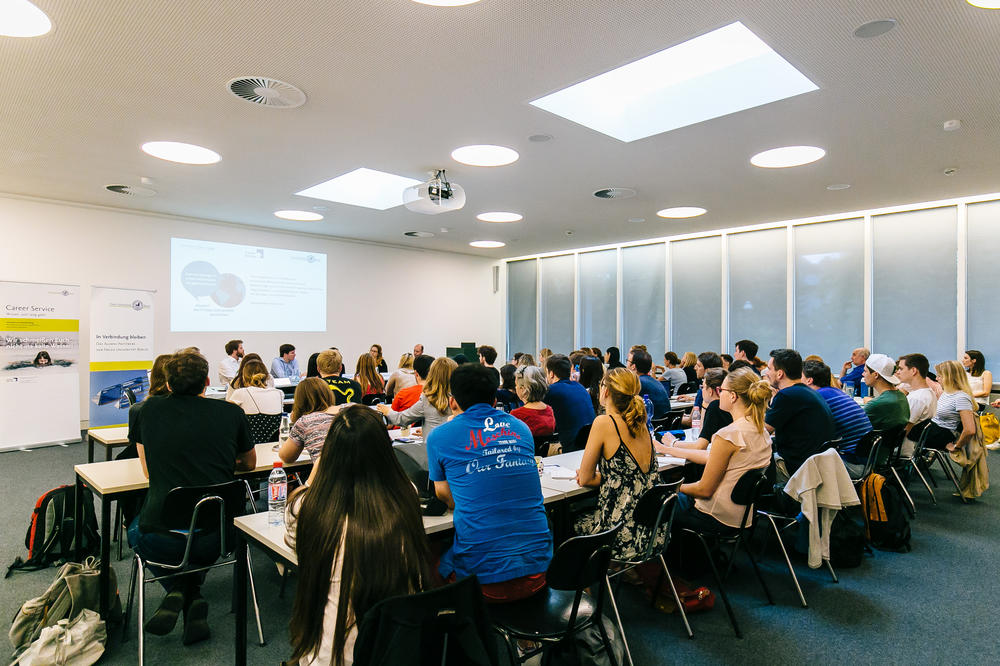 Ist die Arbeit in einer Internationalen Organisation das Richtige für mich? Wie verbessere ich meine Chancen auf eine Stelle durch Praktika und erste Berufserfahrung? Sind Netzwerke wirklich so wichtig? Passt eine internationale Karriere zu meiner Lebensplanung? Um über diese und weitere Fragen zu diskutieren, hatten im Rahmen der International Week 2017 das Alumni-Netzwerk und der Career Service der Freien Universität Studierende und Promovierende zur Veranstaltung „Karrierewege in Internationalen Organisationen – Alumni der Freien Universität berichten“ eingeladen. Fünf Absolventinnen und Absolventen der Freien Universität schilderten ihre beruflichen Einstiege, Umwege, Strategien, Zufälle, Hürden und Erfolge. Rund 75 Studierende waren gekommen und nutzten die Gelegenheit, um Fragen zu stellen und mit den Alumni persönlich ins Gespräch zu kommen.