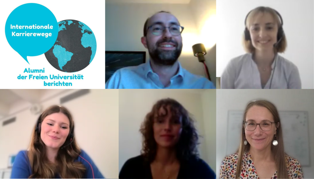 Vier Alumni der Freien Universität, aktuell tätig bei der Europäischen Kommission in Brüssel, für die Deutsche Gesellschaft für Internationale Zusammenarbeit in Kairo, bei der OECD in Paris und bei Deloitte in London, berichten von ihren persönlichen Erfahrungen, Strategien, Hürden, Umwegen und Erfolgen. Rund 70 Studierende nutzten die Gelegenheit, Fragen zu stellen und sich über Möglichkeiten internationaler Karrierewege zu informieren und inspirieren zu lassen.