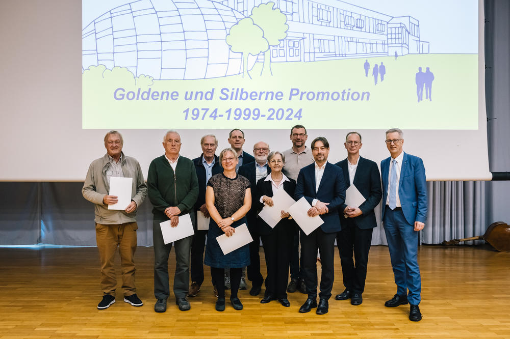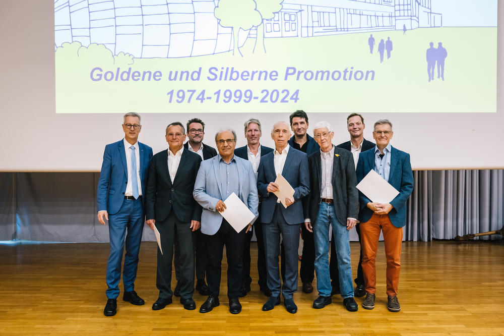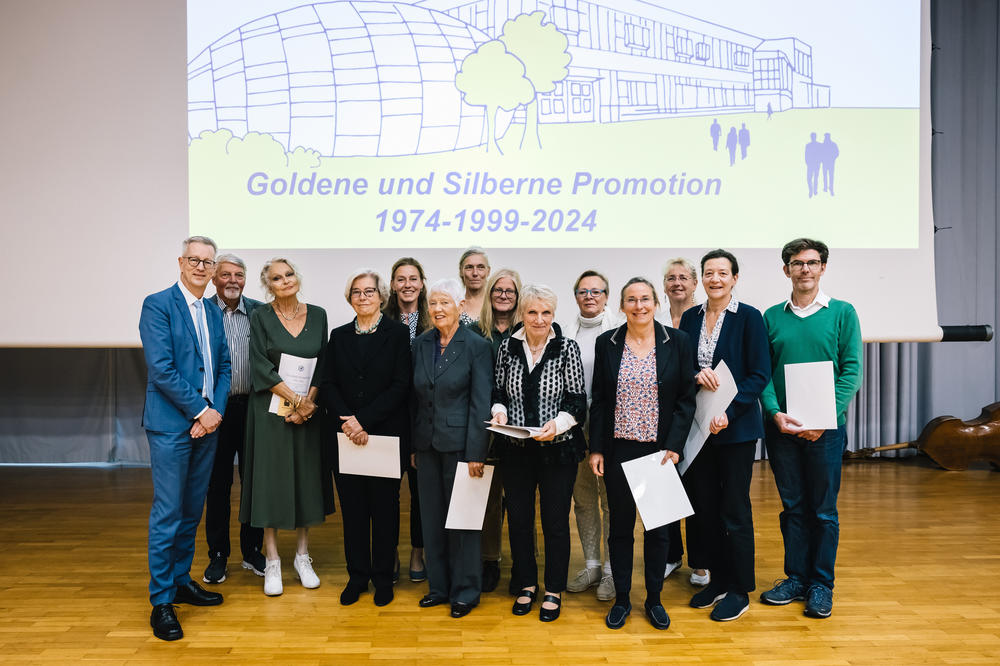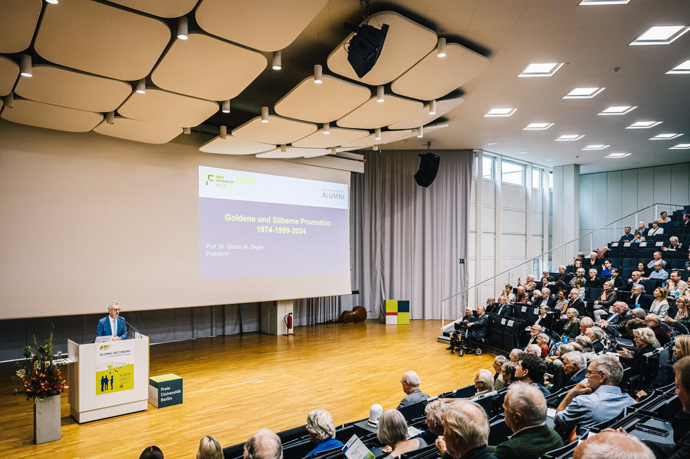 Am 27. September 2024 fand die Feier der Goldenen und Silbernen Promotion 1974 - 1999 - 2024 statt. Der Präsident der Freien Universität Berlin, Professor Dr. Günter M. Ziegler begrüßte die Jubilarinnen und Jubilare im großen Hörsaal in der Rost- und Silberlaube zum Festakt und zur feierlichen Urkundenübergabe.