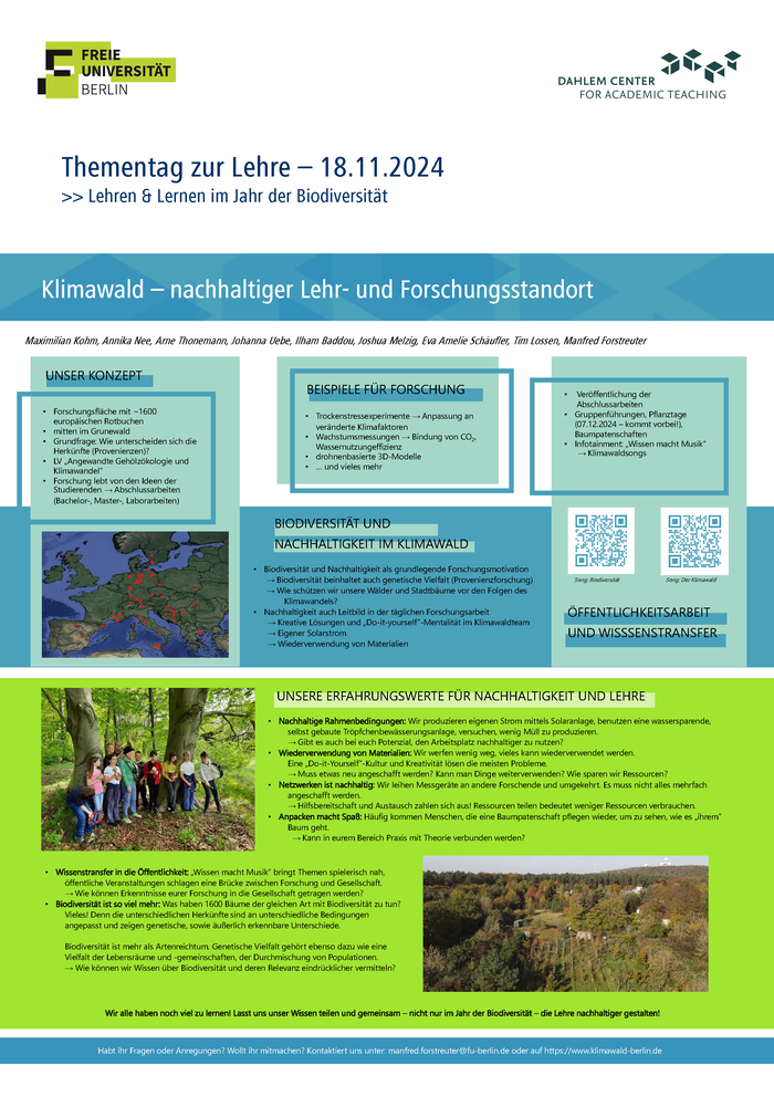 - Platz 1 >> Klimawald - nachhaltiger Lehr- und Forschungsstandort - Dr. Manfred Forstreuter, Maximilian Kohm, Annika Nee, Arne Thonemann, Johanna Uebe, Ilham Baddou, Joshua Melzig, Eva Amelie Schäufler, Tim Los
