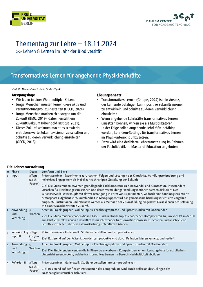 Die Preisübergabe erfolgte auf der Abschlussveranstaltung und der Terrasse beim Dahlem Center for Academic Teaching.