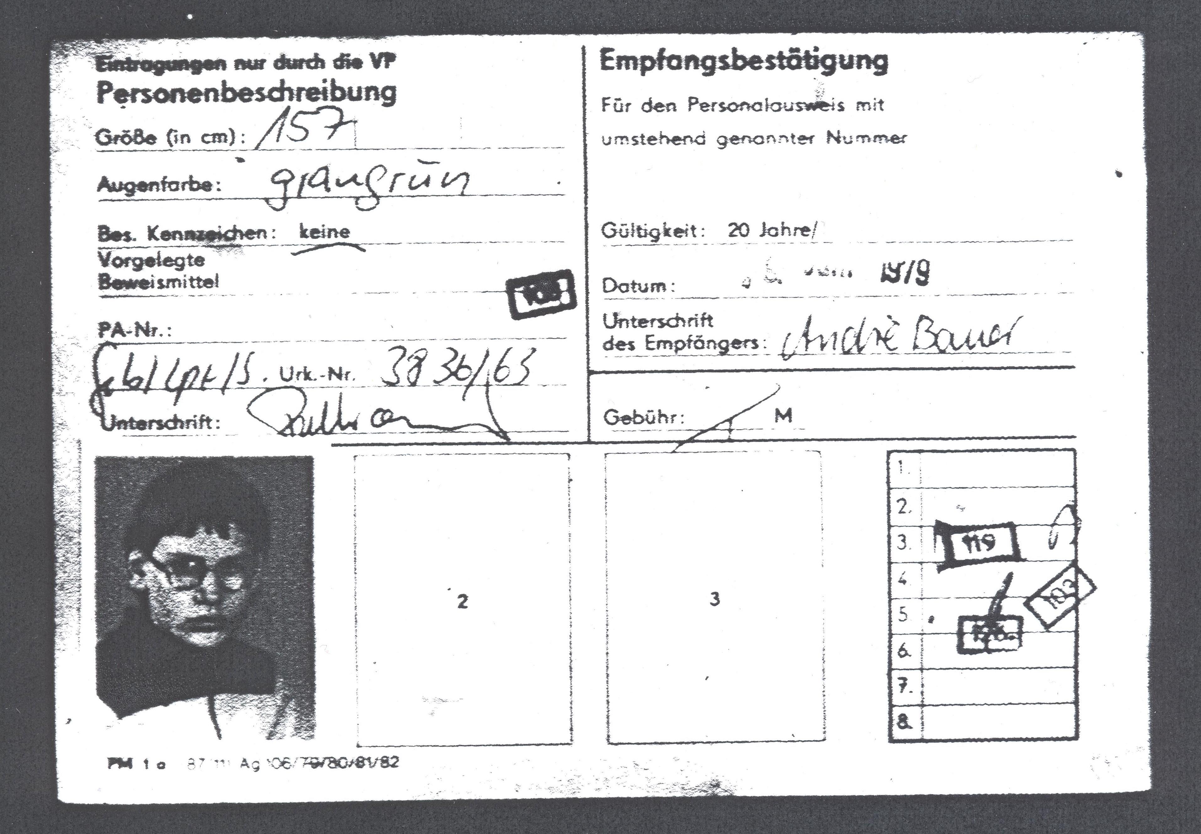 Der Personalausweis von André Bauer Bildquelle: Stadtarchiv Leipzig