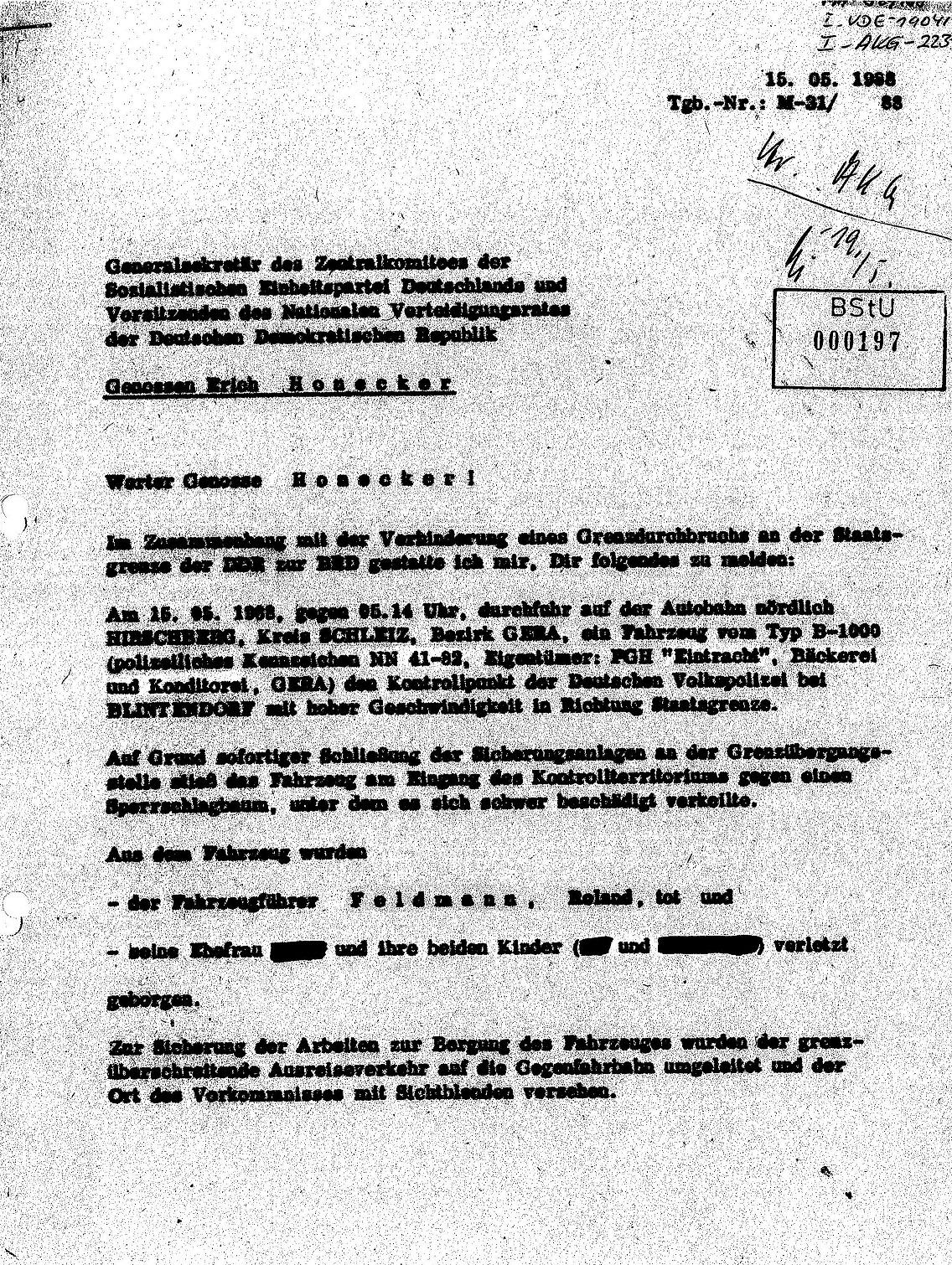 Meldung an Erich Honecker Quelle: BStU