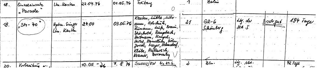 Ausriss „Nachweis über durchgeführte opertative Einsätze“ des Spezialkommandos der Hauptabteilung I des Staatssicherheitsdienstes. Die Erschießung Michael Gartenschlägers wurde mit „sehr gut“ bewertet, die Todesschützen belobigt und mit Orden ausgezeichnet. Bildquelle: BStU, MfS, Ast Frankfurt/O., AU122/61