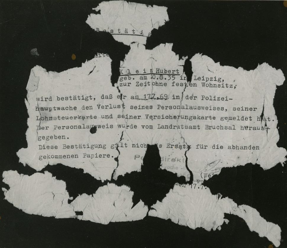 Die Bezirksverwaltung Suhl des Ministeriums für Staatssicherheit, die den Fall untersuchte, wusste freilich schon kurz darauf, dass es sich bei dem Toten um Hubert Klein handelte. Die MfS-Leute konnten nämlich ein zerrissenes Stück Papier wieder zusammensetzen, das bei dem Toten aufgefunden wurde. Es handelte sich um eine amtliche Bescheinigung, dass „Hubert Klein, zur Zeit ohne festen Wohnsitz” am 17. Juli 1969 der Polizei den Verlust seiner Personalpapiere gemeldet hatte.