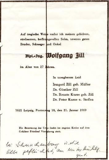 Die Todesanzeige für Wolfgang Zill Quelle: BStU