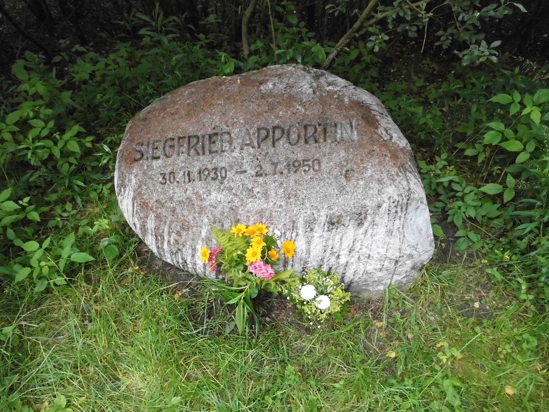 Der gelernte Maler Siegfried Apportin aus Güstrow meldete sich 1948 freiwillig zur Deutschen Grenzpolizei. Am 2. Juli 1950 war er mit seinem Posten, Volkspolizeianwärter Leo Knöpke, im Grenzeinsatz. Gegen 21.20 Uhr hörten die Grenzwachen in der Nähe ein schussartiges Geräusch. Um 21.30 Uhr ging in der Kommandantur Herrnburg die Meldung ein, dass Wachtmeister Apportin mit einem Kopfschuss am Kontrollpunkt aufgefunden wurde. Neben dem Toten lag Knöpkes entsicherter Karabiner. Der herbeigerufene Vertragsarzt der Grenzbereitschaft stellte den Tod Apportins durch Einschuss in den Mund fest. Volkspolizeianwärter Knöpke war verschwunden. Er stellte sich im Westen zunächst den britischen Besatzungstruppen, die ihn nach seiner Vernehmung der westdeutschen Polizei übergaben. Eine Verurteilung durch das Lübecker Landgericht wegen „vorsätzlicher Tötung“ endete laut Spiegel nach einer Revisionsentscheidung 1951 mit einer Bestrafung zu einer dreimonatigen Gefängnisstrafe wegen „fahrlässiger Tötung“. Die Strafe war jedoch bereits durch die vorherige Untersuchungshaft verbüßt. (Recherchen: MP, jos.; Autor: jos.)