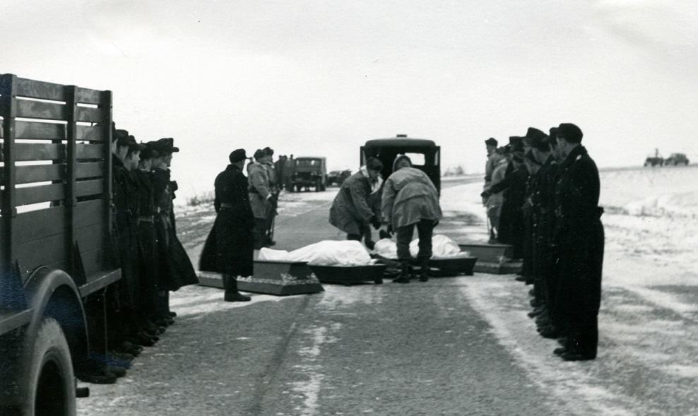 Übergabe der Leichen von Werner Schmidt und Heinz Janello durch die US-Constabluary