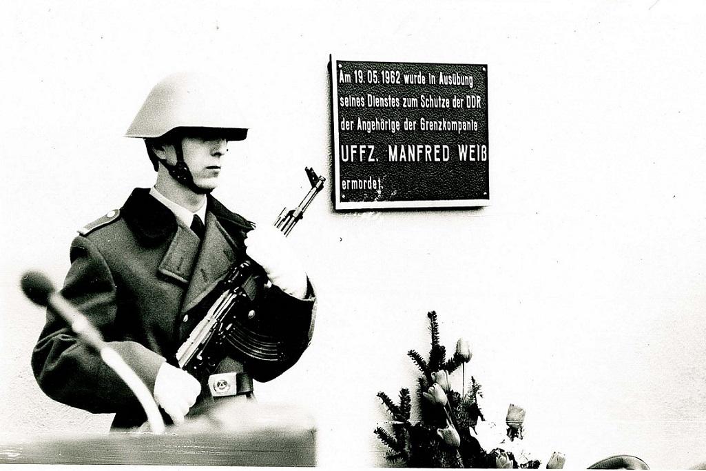 Heute erinnert ein kleines Freiluftmuseum mit Skulpturenpark an den ehemaligen Grenzübergang Eußenhausen-Meiningen. Nicht weit von hier entfernt fand am 20. Mai 1962 kurz vor 1.00 Uhr eine Kontrollstreife den Postenführer Manfred Weiß in einem Gebüsch tot auf. Sein Gesicht war mit einer Tarnjacke zugedeckt, neben ihm lag das Maschinengewehr seines Postens Günter Jablonski. Manfred Weiß hatte sich zuletzt gegen Mitternacht über das Grenztelefon bei seiner Kompanie gemeldet. Er befand sich dann gemeinsam mit Jablonski auf dem Weg zur Postenablösung. Weil sie dort aber nicht eintrafen, wurde der Postenbereich von Manfred Weiß durch eine Kontrollstreife überprüft. Später entdeckte man Fußspuren im Zehn-Meter-Kontrollsteifen. Günter Jablonski war geflohen.