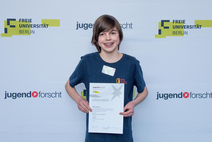 Gewinnerin Martha Treese (16 Jahre) vom Rückert-Gymnasium hat nach dem Regionalwettbewerb Dahlem auch den Landeswettbewerb Berlin auf dem Fachgebiet Biologie gewonnen. Biochemieprofessor Florian Heyd von der Freien Universität Berlin hatte sie eingeladen, in seinem Labor für den Landeswettbewerb zu experimentieren. So konnte Martha beeindruckende neue Ergebnisse vorstellen. Wir wünschen ihr viel Erfolg beim Bundeswettbewerb Ende Mai in Herzogenaurach!