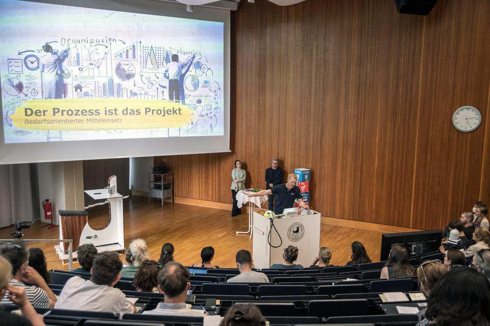 Am 08. Juni 2022 fand im Hörsaal 1b und im Theaterhof das FUturist-Awarding mit allen acht FUturist-Teams statt. Sie präsentierten einem breiten Publikum ihre bisherigen Projektergebnisse. Die Beiträge können Sie sich als Video auf den Projektseiten ansehen.