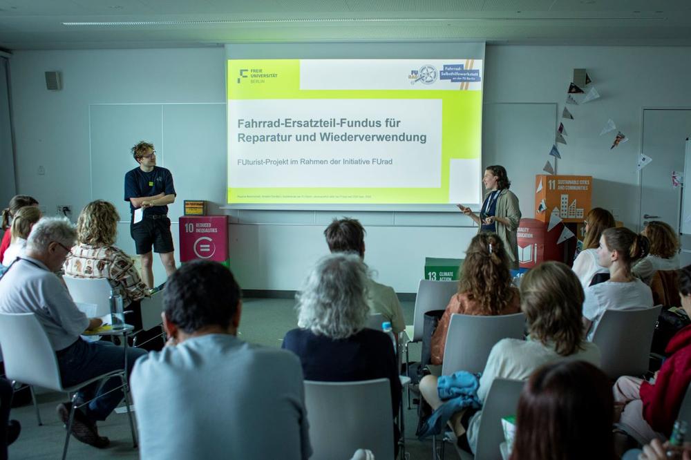 Tauchen Sie ein in die Welt der Diversität und Gleichstellung mit FUFLINTAΦ, das die Sichtbarkeit von Frauen und FLINTA-Personen in der Physik fördert und eine inklusive Wissenschaftskultur vorantreibt. Erleben Sie, wie „Nachhaltig WIRksam“ Demokratie stärkt, indem es Wissenschaftskommunikation und gesellschaftlichen Zusammenhalt verbindet. Entdecken Sie den Fahrrad-Fundus für Reparatur und Wiederverwendung, der Ressourcen schont und den bewussten Umgang mit Mobilität stärkt. Lernen Sie die Regentonnen Held:innen kennen, die mit Kooperationsstrategien Wasser sparen und Bäume auf dem Campus schützen. Und schließlich lassen Sie sich von „Rasenmäääher“ begeistern, die mit Schafen die Biodiversität fördern und nachhaltige Grünflächenpflege neu denken.