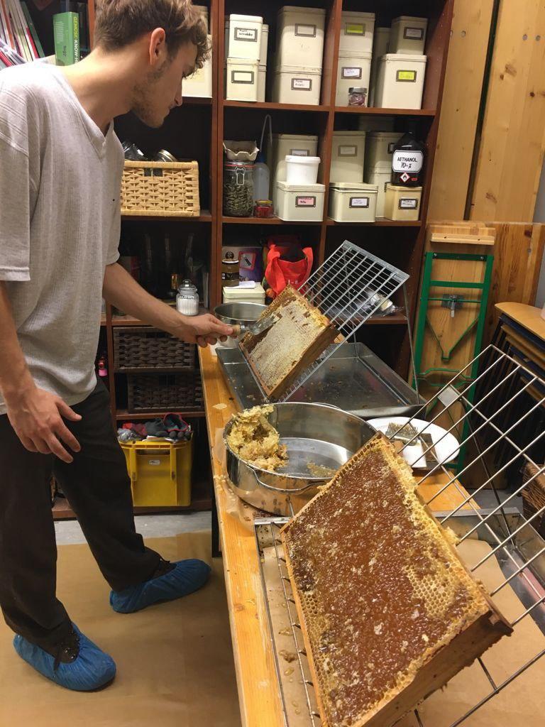 Da mehrere Mitglieder unserer Gartengemeinschaft Imker:innen und Bienen-Expert:innen sind, bieten wir seit einigen Jahren auch Einführungen rund um Themen, wie Honigernte, Wildbienen, Nisthilfenbau und Imkerei an. Dies fand bisher zum einem durch interne Workshops, zum anderen auch in Verbindung mit der SchülerUni Nachhaltigkeit + Klimaschutz statt. Seit 2019 erstellen wir außerdem mindestens einmal jährlich unseren eigenen Met und Bärenfang, welcher von Jahr zu Jahr trinkbarer wird. ;-)